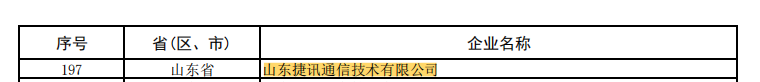 喜報(bào)!山東捷訊通信技術(shù)有限公司榮獲國(guó)家專精特新“小巨人”企業(yè)。